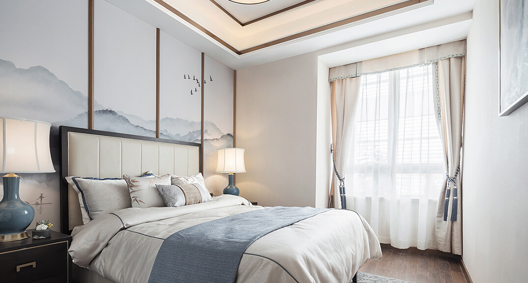 青特星城142㎡三室兩廳主臥新中式風(fēng)格裝修案例效果圖
