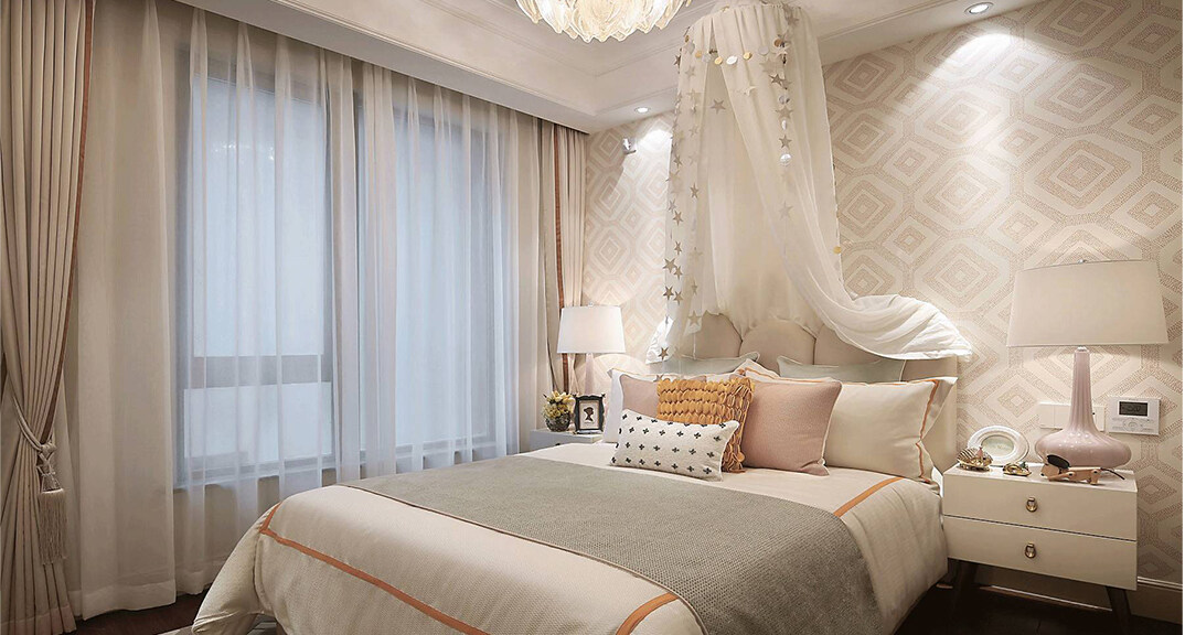 青特星城113㎡三室兩廳臥室簡(jiǎn)歐風(fēng)格裝修案例效果圖