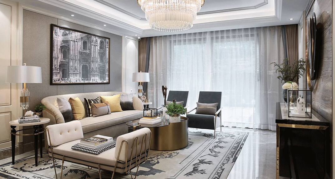 青特星城113㎡三室兩廳客廳簡(jiǎn)歐風(fēng)格裝修案例效果圖
