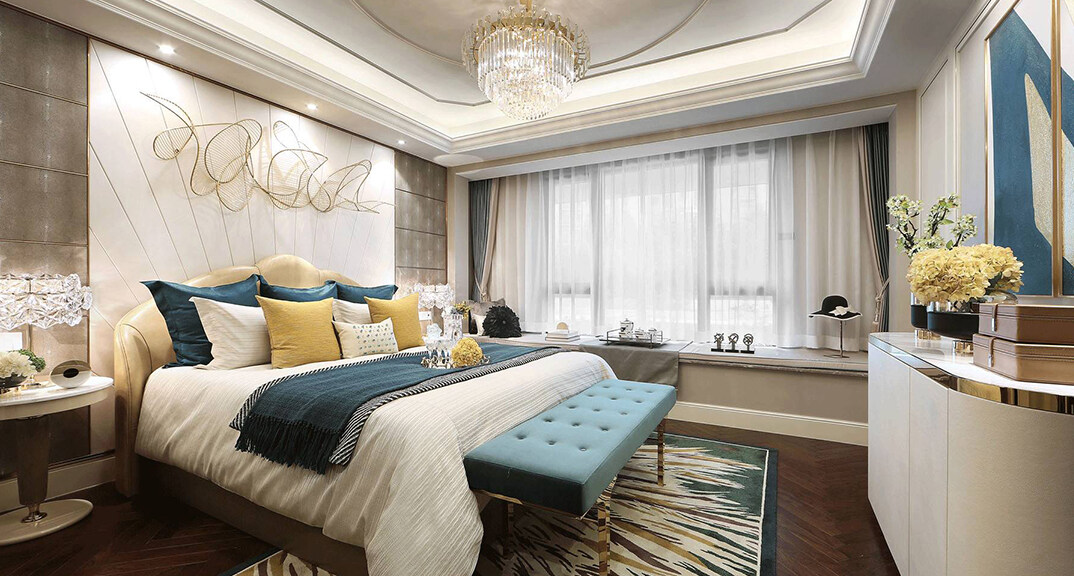青特星城113㎡三室兩廳主臥簡(jiǎn)歐風(fēng)格裝修案例效果圖