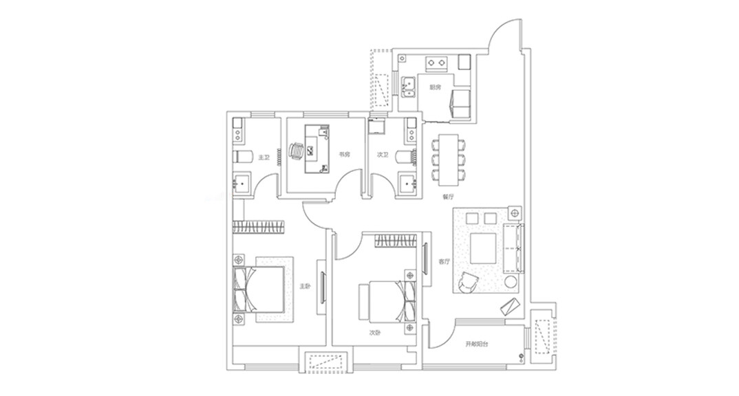 青特星城113㎡三室兩廳戶型平面布局圖