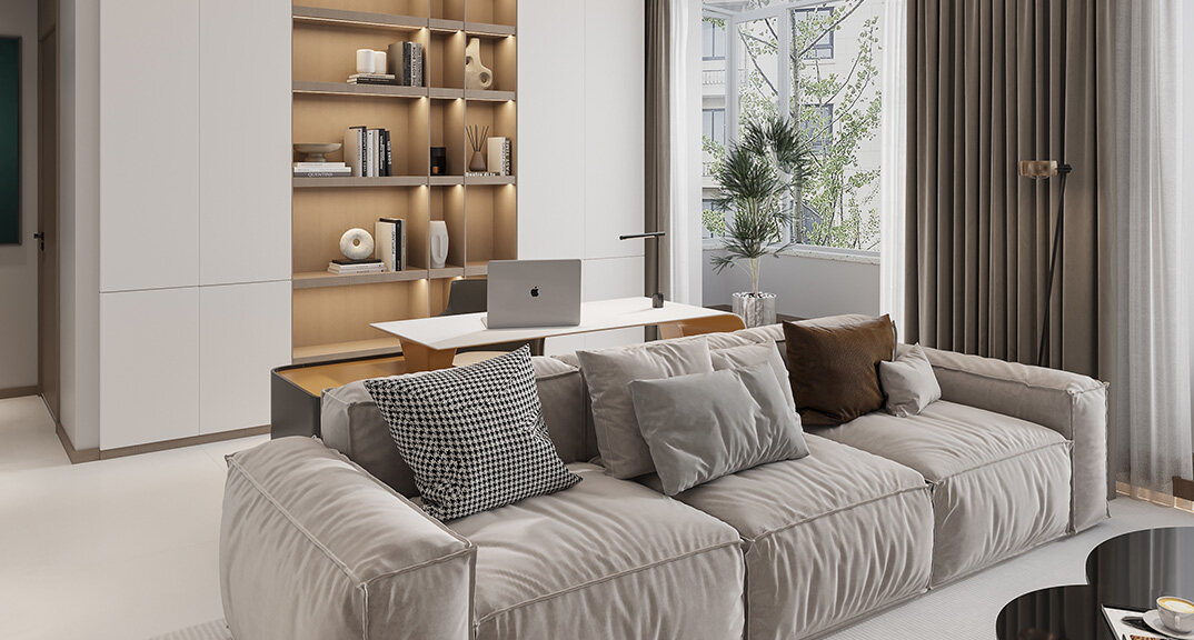 東岸世家167㎡三室兩廳客廳現(xiàn)代極簡(jiǎn)風(fēng)格裝修案例效果圖