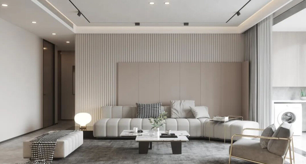 華僑府邸180㎡三室兩廳客廳沙發(fā)現(xiàn)代輕奢風(fēng)格裝修案例效果圖