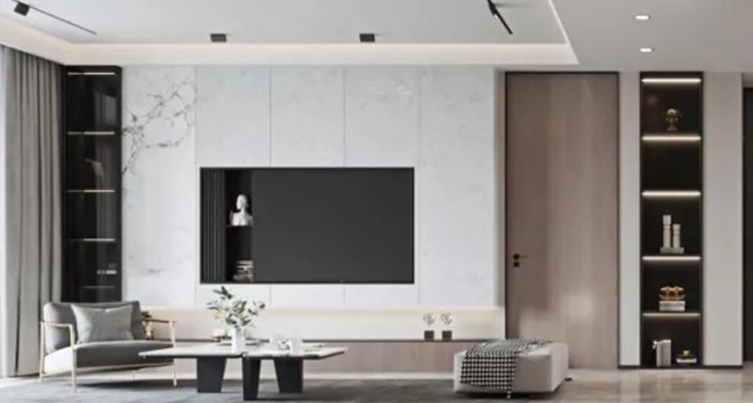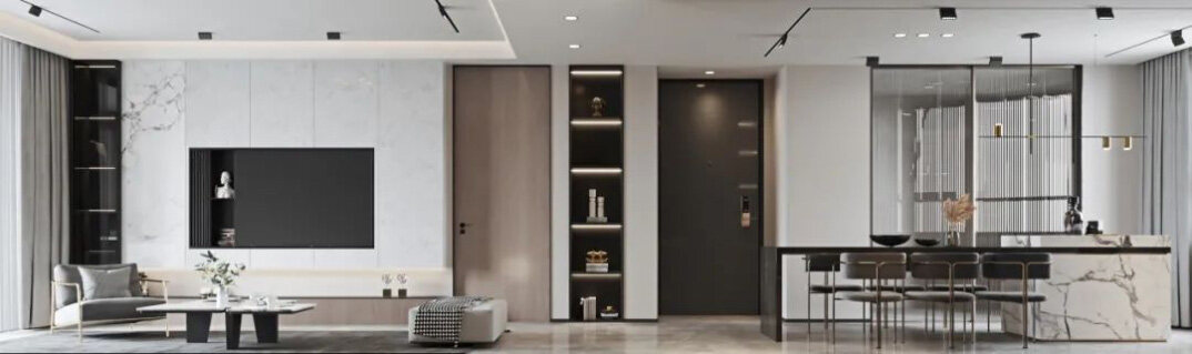 華僑府邸180㎡三室兩廳客廳現(xiàn)代輕奢風(fēng)格裝修案例效果圖