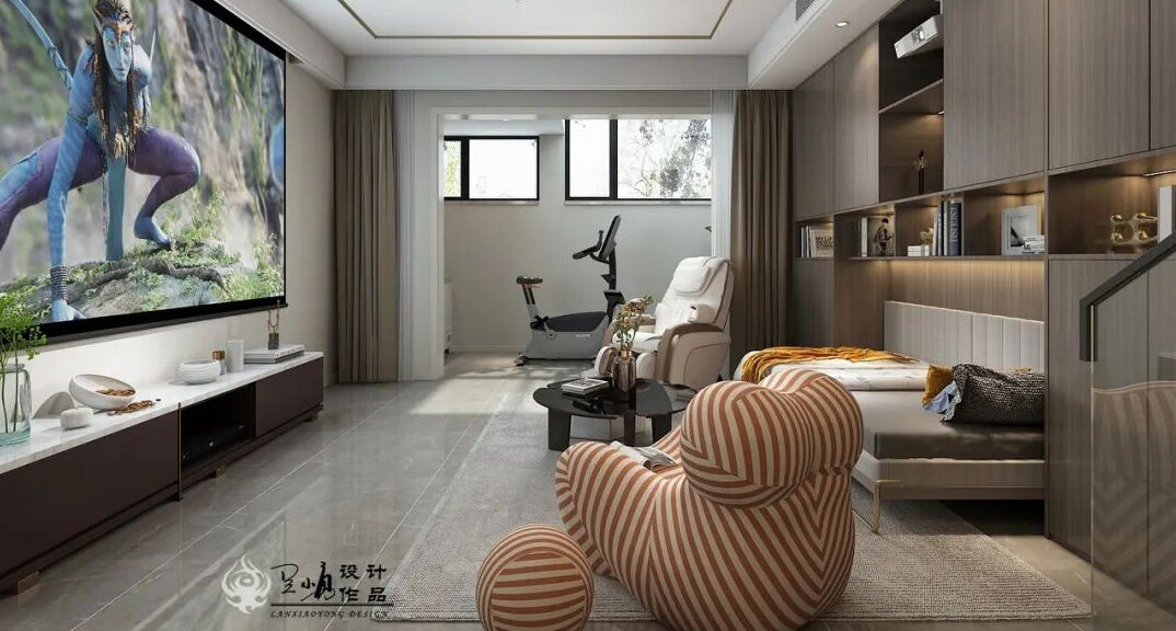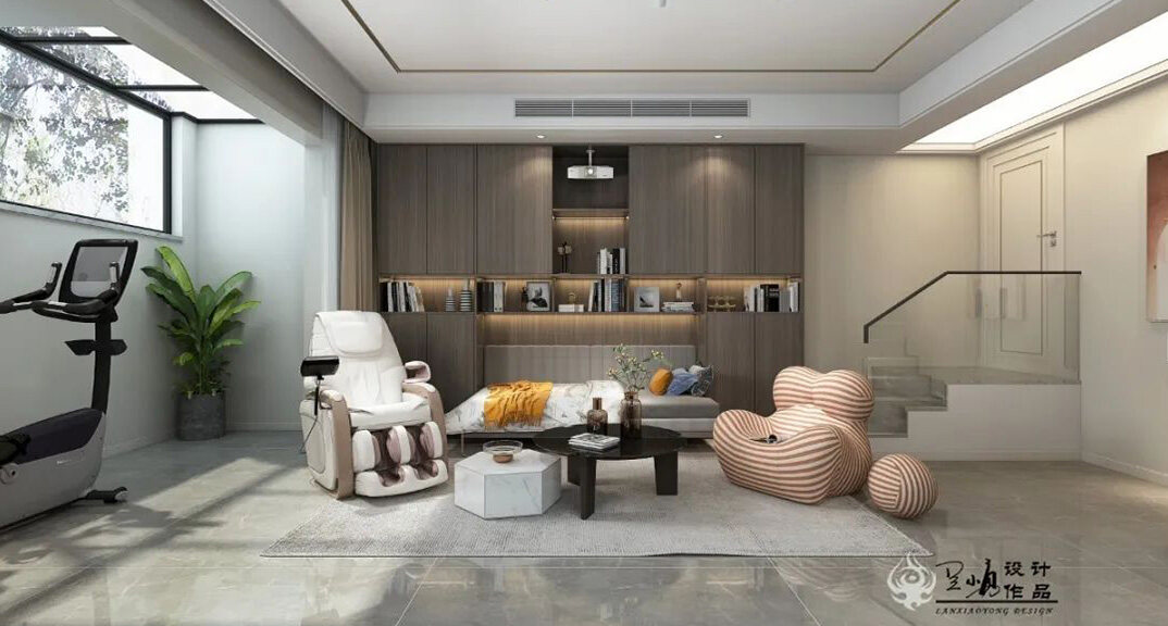 原筑300㎡別墅健身房現(xiàn)代輕奢風格裝修案例效果圖