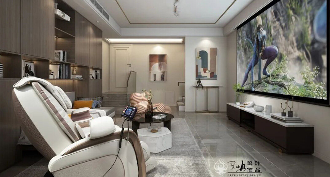原筑300㎡別墅客廳電視現(xiàn)代輕奢風格裝修案例效果圖