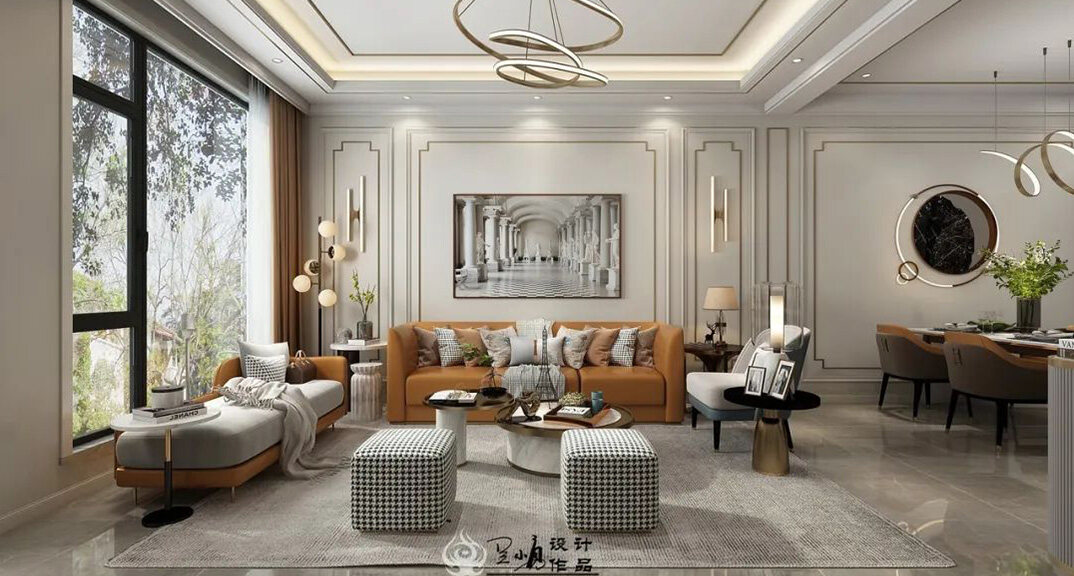 原筑300㎡別墅客廳現(xiàn)代輕奢風格裝修案例效果圖