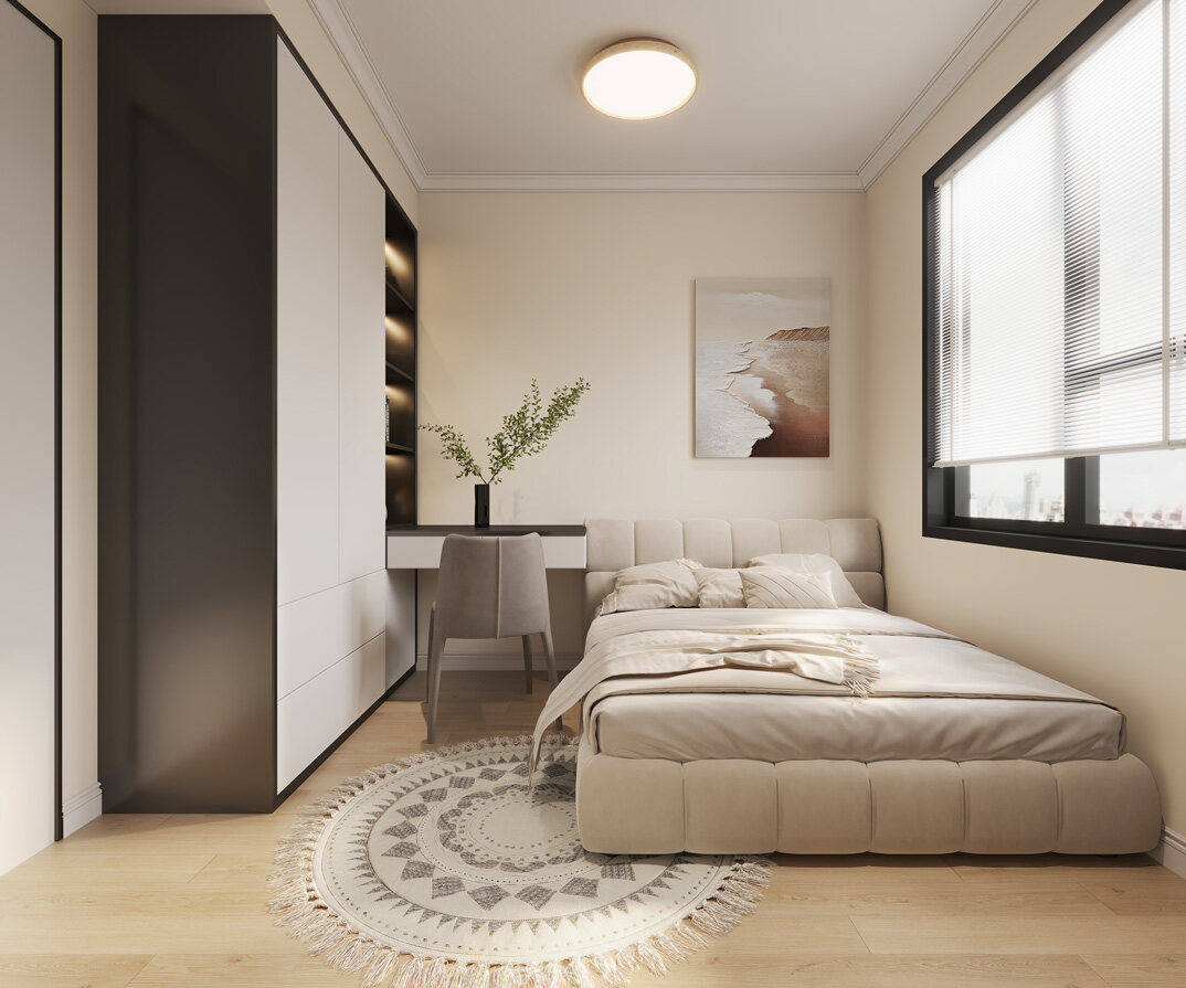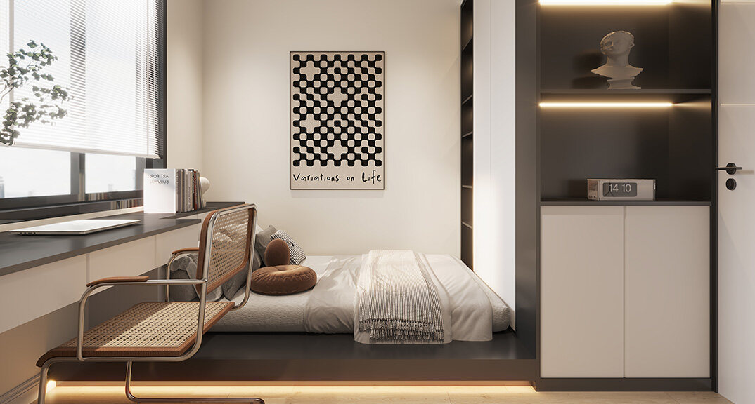遠洋萬和公館122㎡三室兩廳次臥現(xiàn)代風格裝修案例效果圖