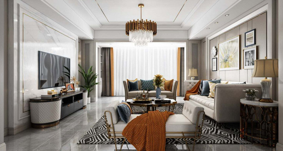 曉港名城140㎡三室兩廳客廳現(xiàn)代簡約風(fēng)格裝修案例效果圖