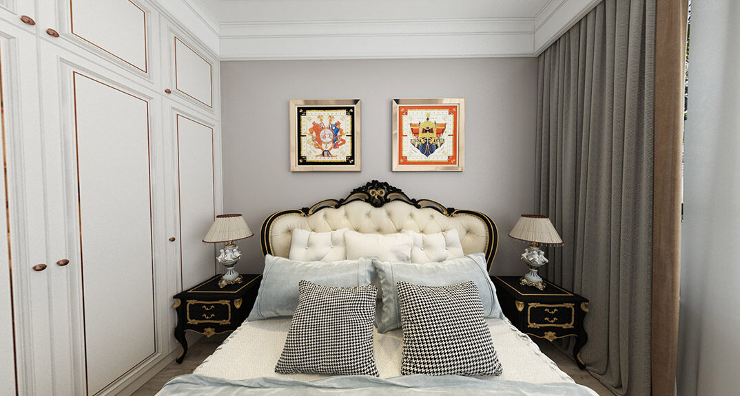 九里風(fēng)華478㎡別墅二樓主臥法式風(fēng)格裝修案例效果圖