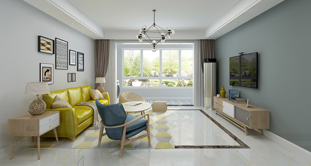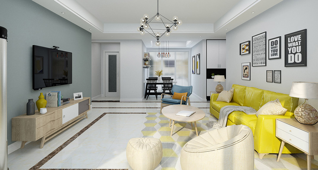 永利國際134㎡三室兩廳客廳北歐風(fēng)格裝修案例效果圖
