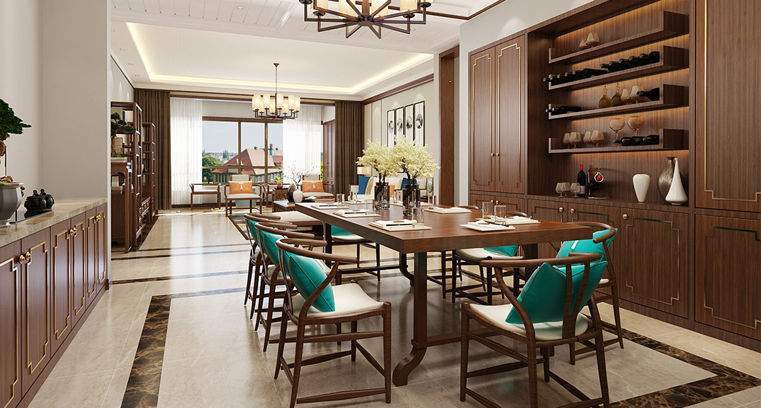 市直三區(qū)260㎡平層餐廳新中式風格裝修案例效果圖
