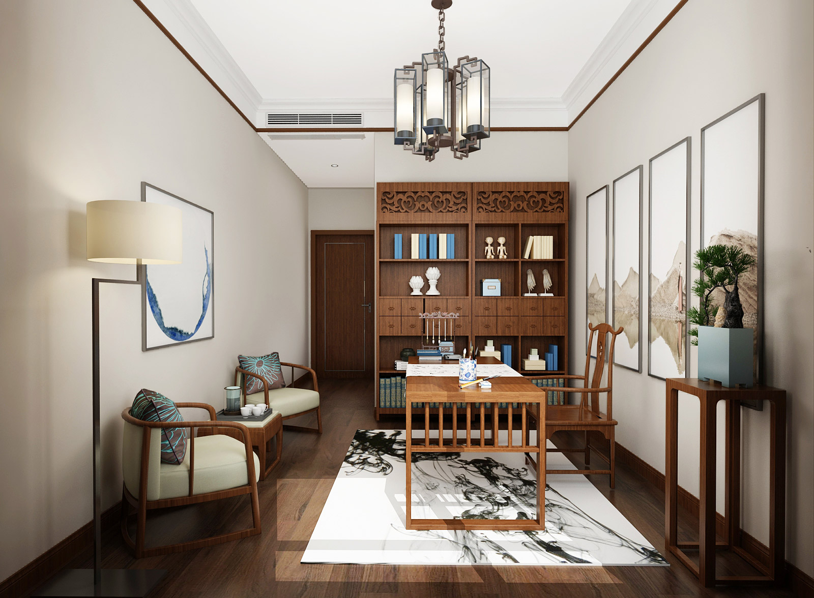 市直三區(qū)260㎡平層書房新中式風格裝修案例效果圖