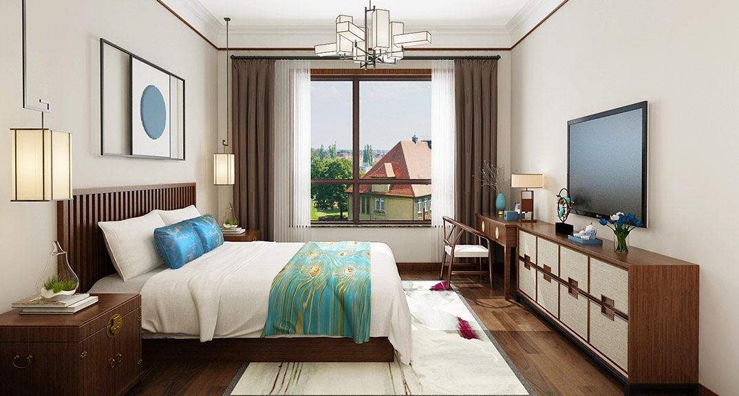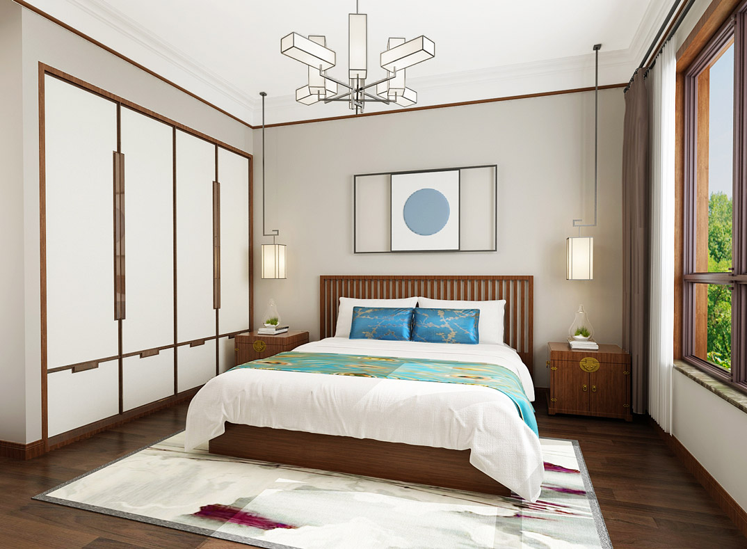市直三區(qū)260㎡平層臥室新中式風格裝修案例效果圖