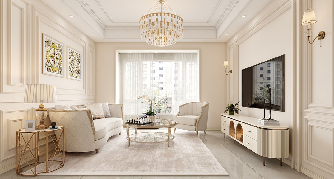 奶油色的墻面打底,選擇無主燈設(shè)計(jì)。軟裝設(shè)計(jì)偏向于柔和溫馨,墻面與吊頂簡(jiǎn)潔的線條設(shè)計(jì),凸顯出空間的立體感。米白色沙發(fā)溫柔的弧形曲線,與奶油白乳膠漆背景墻相得益彰,地面加鋪短絨地毯,搭配清新自然的綠植,讓家居氛圍變得更加柔和唯美??臻g直邊與弧形的對(duì)比,顯得層次感十足,配以創(chuàng)意玻璃茶幾,大面積的白色家居,再加上木質(zhì)元素點(diǎn)綴,呈現(xiàn)空間輕盈通透的質(zhì)感。
