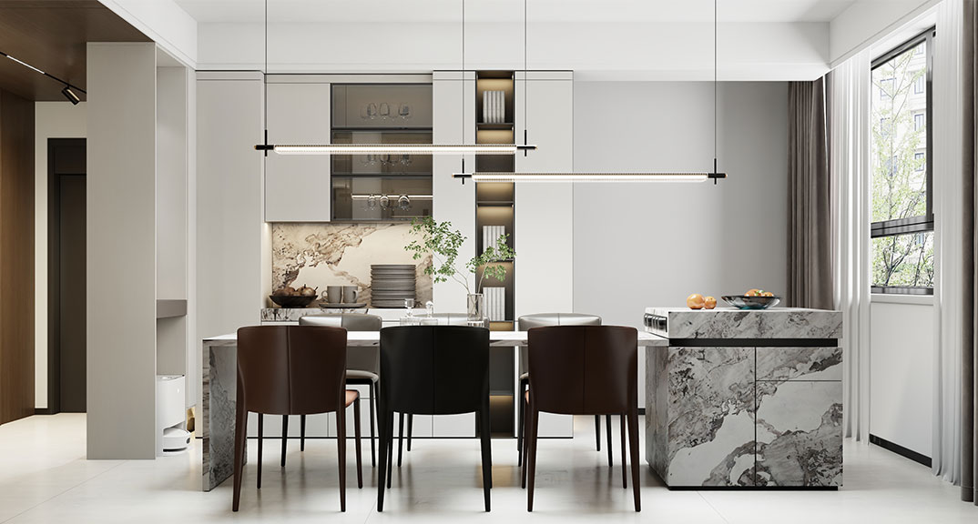銀澳花園120㎡兩室一廳餐廳輕奢風(fēng)格裝修案例效果圖