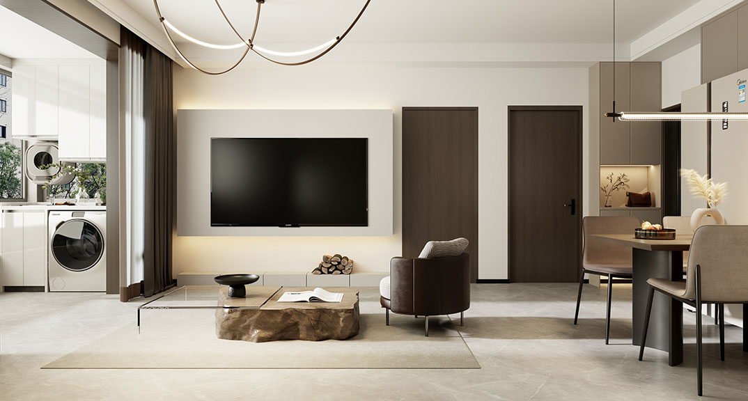 悅動(dòng)灣109㎡三室兩廳客餐廳現(xiàn)代簡約風(fēng)格裝修案例效果圖