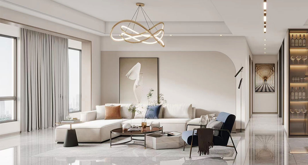 君悅府南區(qū)140㎡四室兩廳客餐廳沙發(fā)現(xiàn)代風格裝修案例效果圖