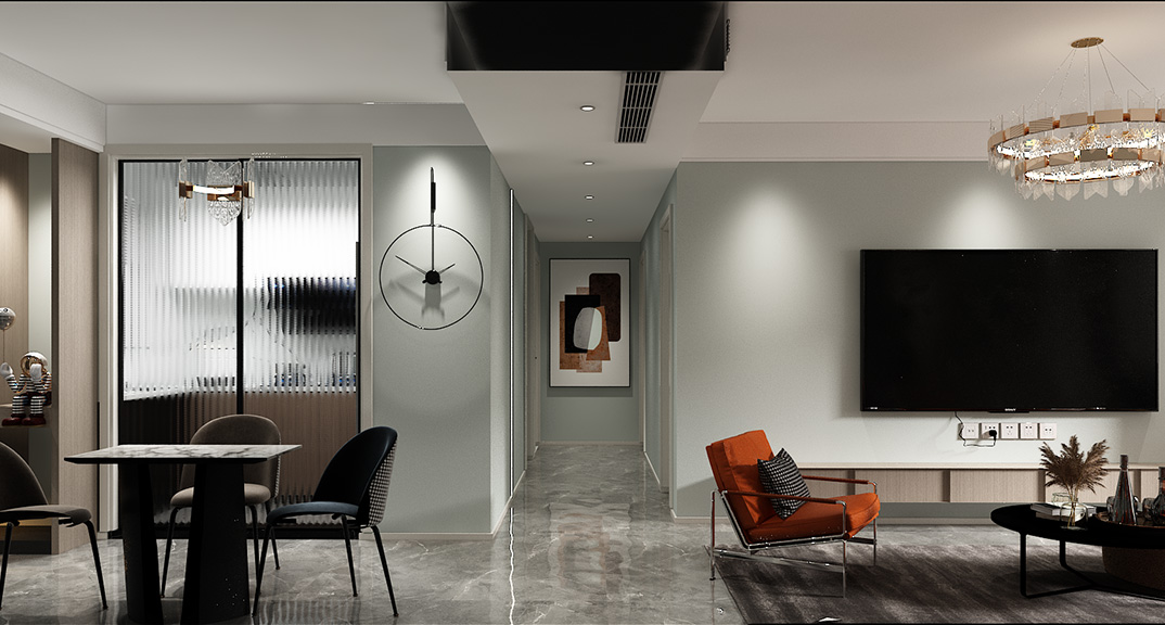 東方家園裝飾為您提供盛世華府126㎡三室兩廳現(xiàn)代風(fēng)格裝修案例效果圖,裝修業(yè)主的需求圍繞現(xiàn)代、高級(jí)的定位開(kāi)展的,讓整體的公共空間得到了提升,動(dòng)線也更加流暢。客廳中的色彩豐富卻不突兀,灰色條紋的地毯搭配深咖單椅,造型獨(dú)特的茶幾,展示出別樣的美感。空間有限,因此在裝修設(shè)計(jì)上采用“減法”的設(shè)計(jì)方式,餐邊柜采用開(kāi)放+封閉式的設(shè)計(jì),是空間更顯靈動(dòng)。