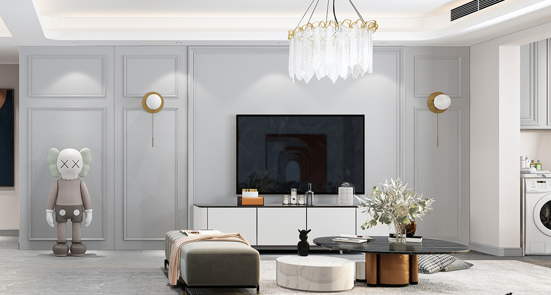 安泰悅湖灣140㎡四室兩廳客餐廳電視現(xiàn)代風格裝修案例效果圖
