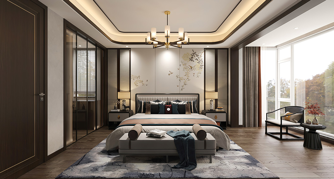 仟佰墅150㎡別墅上疊主臥新中式風格裝修案例效果圖