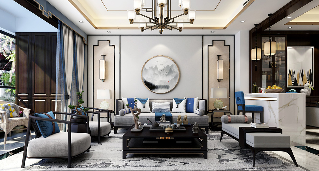 安泰名筑190㎡四室兩廳客廳新中式風格裝修案例效果圖