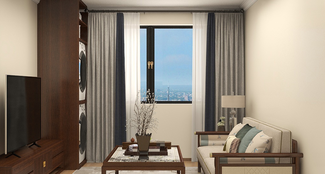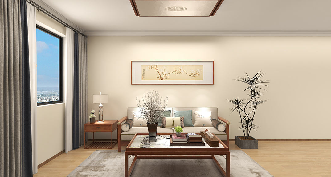 保利時代88㎡兩室兩廳客廳新中式風格戶型研發(fā)案例