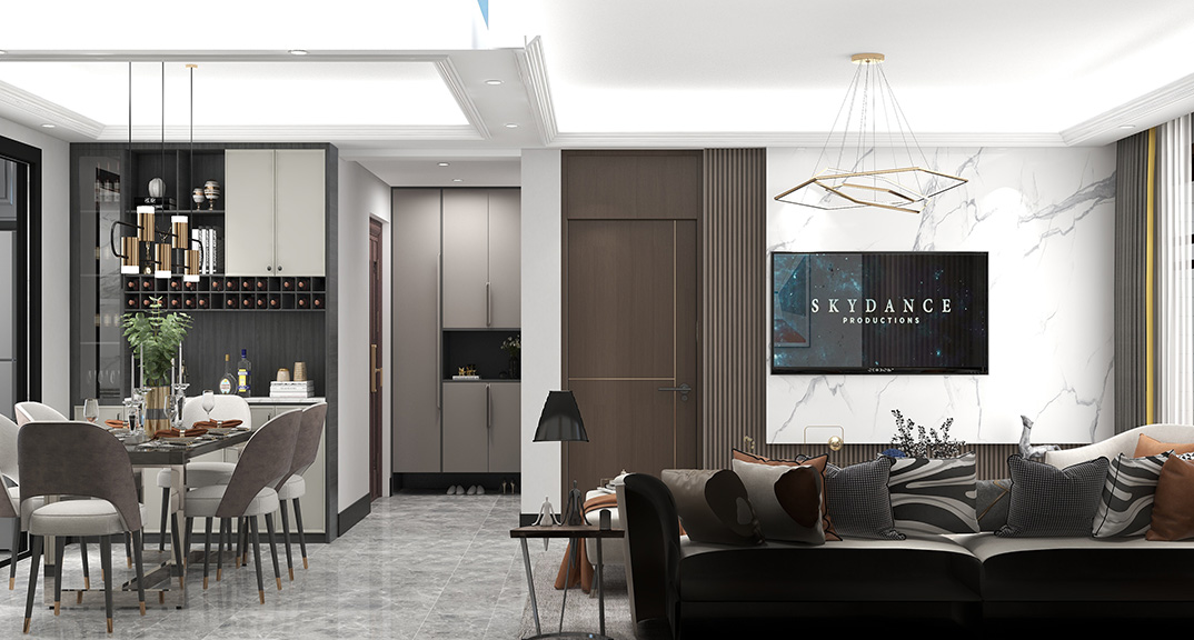 保利時代98㎡三室兩廳餐廳輕奢風格戶型研發(fā)效果圖