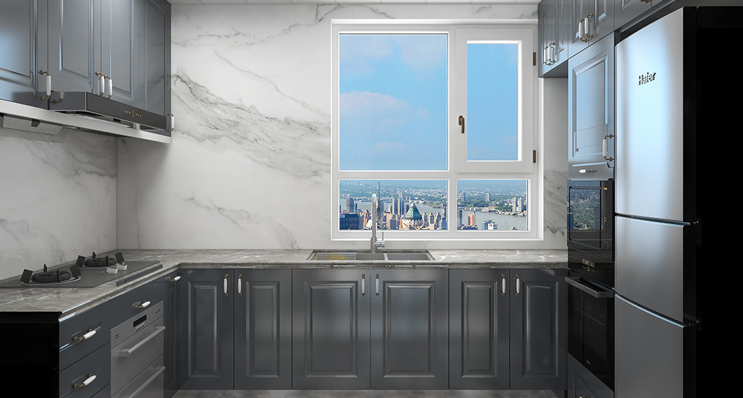 保利時代98㎡三室兩廳廚房輕奢風格戶型研發(fā)效果圖