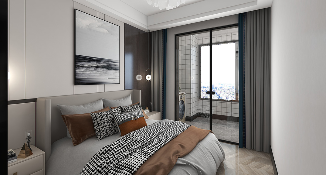 保利時代98㎡三室兩廳臥室輕奢風格戶型研發(fā)效果圖