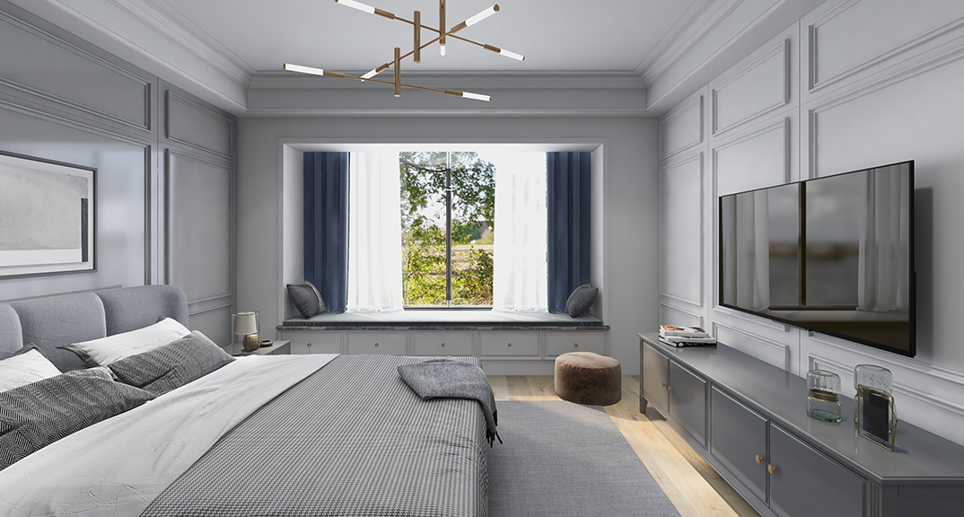 保利時(shí)代110㎡三室兩廳美式輕奢風(fēng)格戶型研發(fā)效果圖