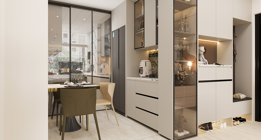 東?;▓@116㎡三室兩廳餐廳現(xiàn)代簡約風(fēng)格裝修案例效果圖