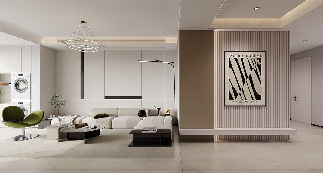 融創(chuàng)逸山136㎡三室兩廳客廳沙發(fā)現(xiàn)代簡約風格裝修案例效果圖