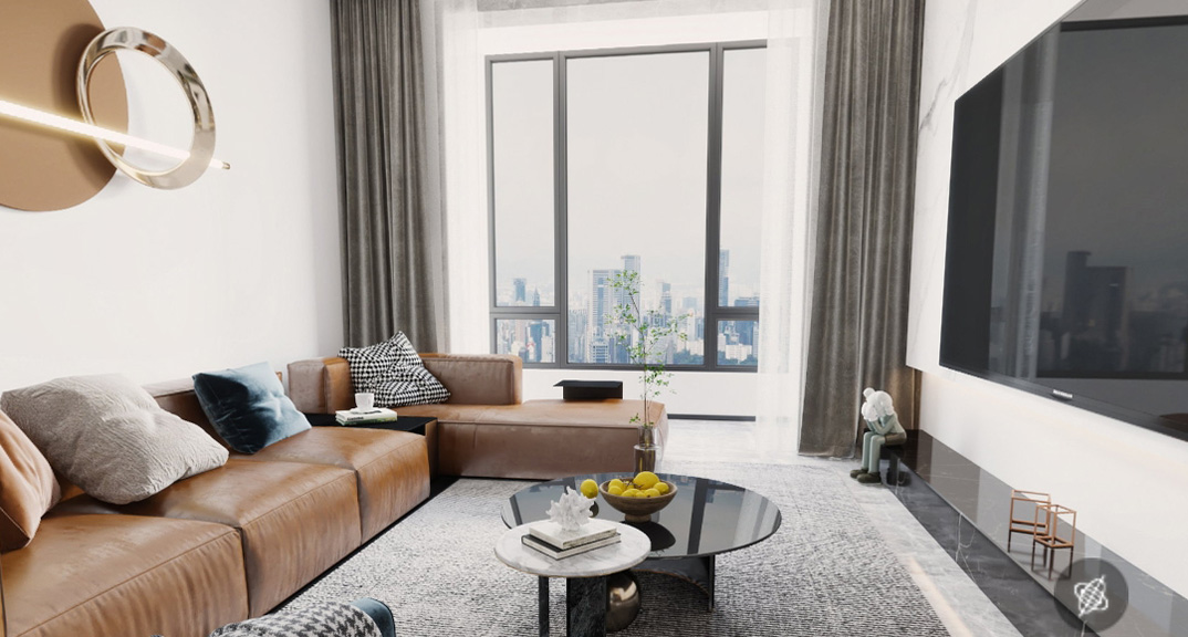 萊頓小鎮(zhèn)94㎡三室兩廳客廳現(xiàn)代簡(jiǎn)約風(fēng)格裝修案例效果圖