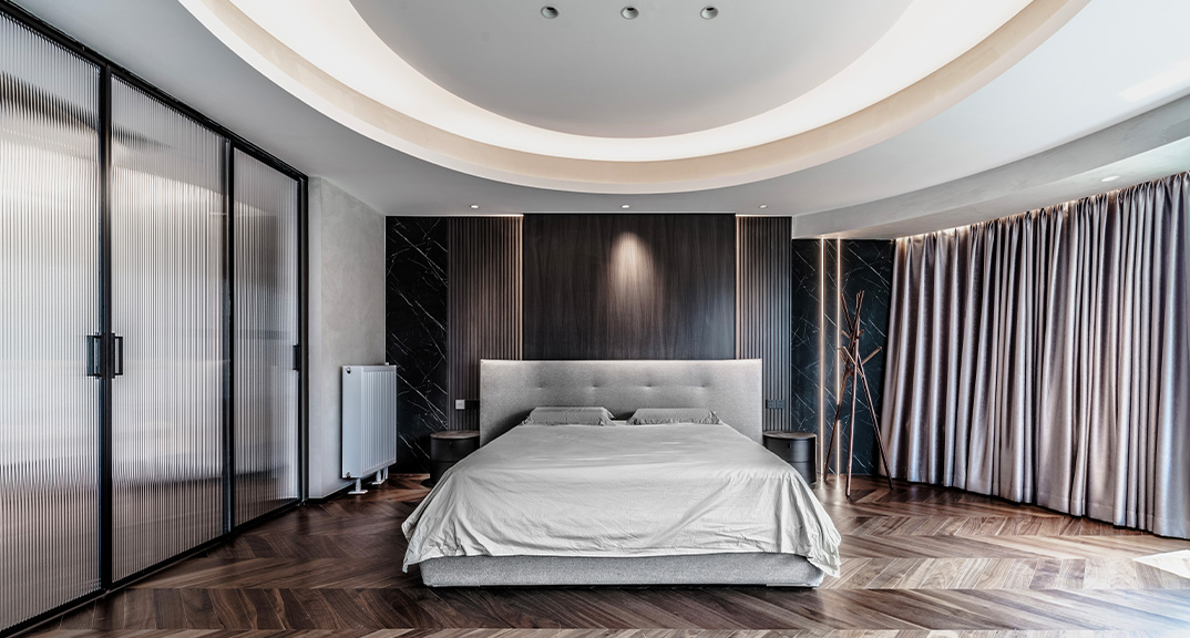 恒大雅苑330㎡平層主臥現(xiàn)代臺(tái)式風(fēng)格裝修案例效果圖