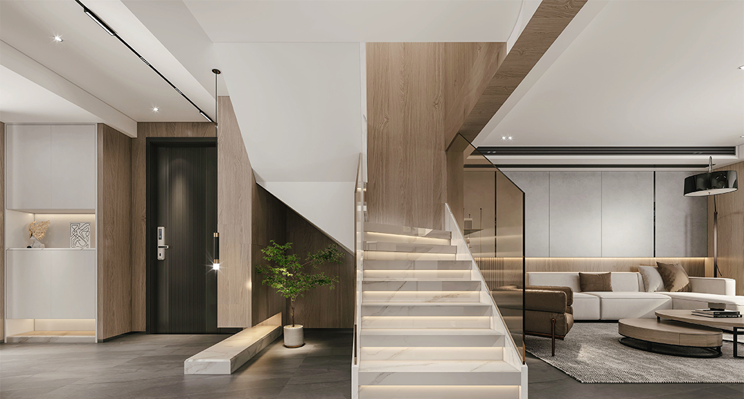 業(yè)主想要自己家富有質(zhì)感與創(chuàng)新,特殊材料,線性燈的運(yùn)用較多,整體空間以木色與深灰色為基調(diào),搭配具有藝術(shù)氣息的工藝品,天然肌理的家具,來營(yíng)造出寧?kù)o優(yōu)雅的居住環(huán)境。