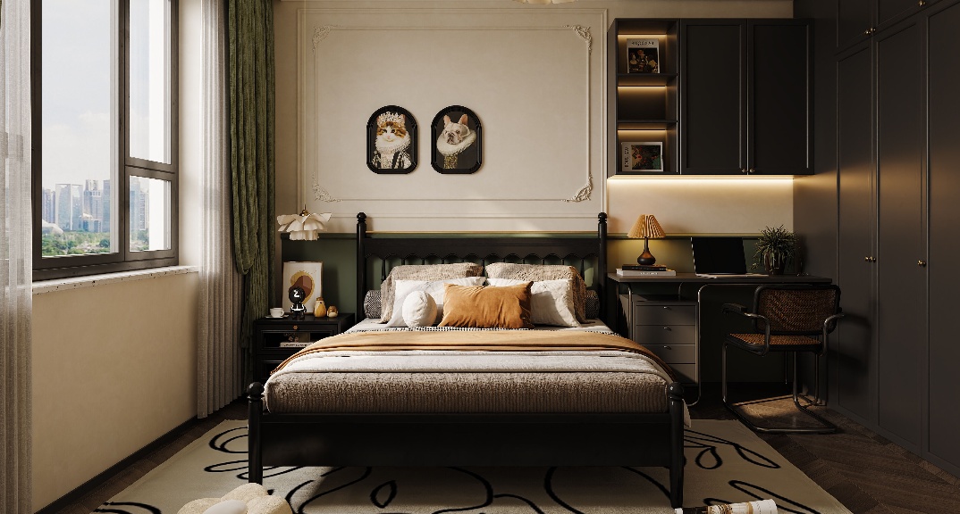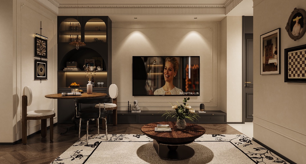 客戶需要書房,考慮到客廳的尺寸,決定在沙發(fā)上后側(cè)作為獨(dú)立的讀書區(qū),既能中和沙發(fā)和電視之間的距離,也可以增加空間的趣味性,用玻璃間隔做到了隱私性和透光性同時(shí)兼顧。
