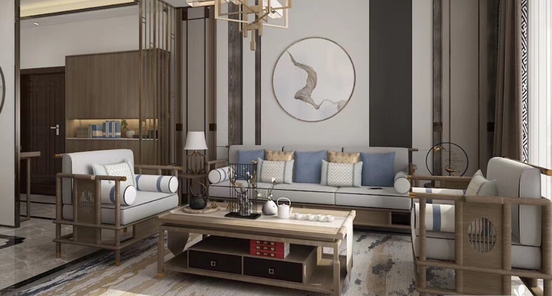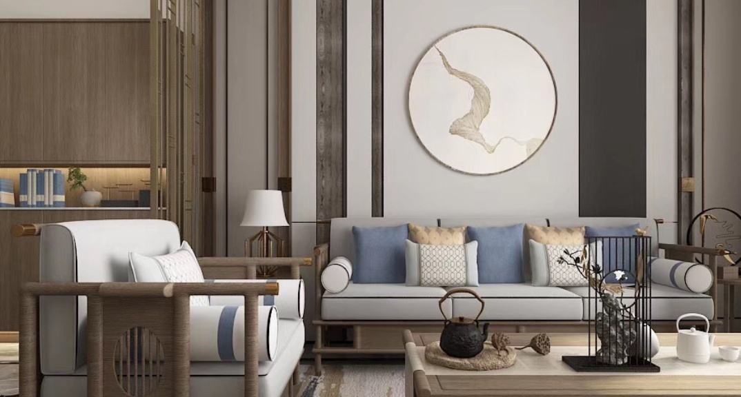 青島裝修公司-裝修效果圖-意墅灣新中式-東方家園裝飾